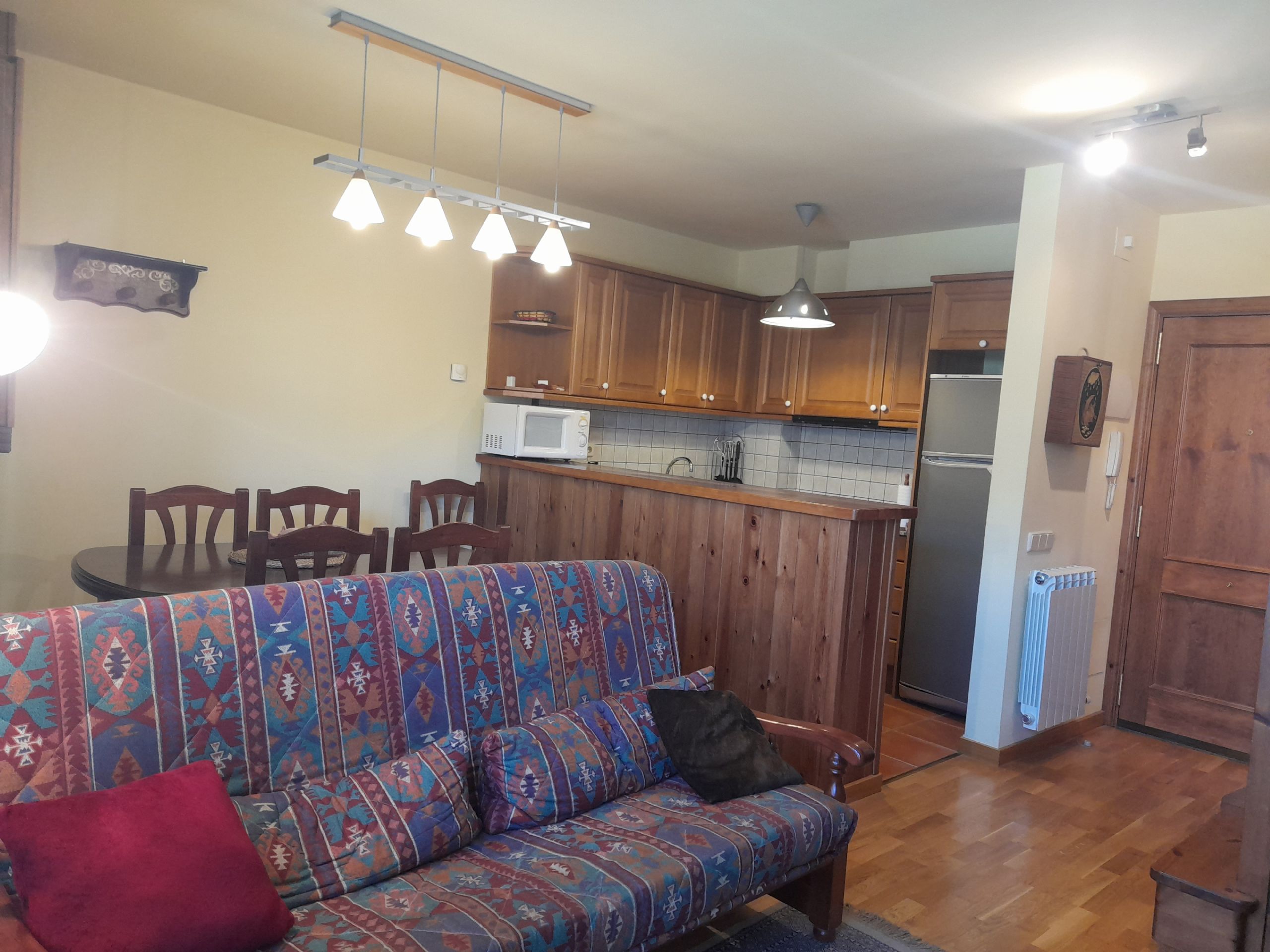 Espectacular apartament tríplex amb llar de foc estil rústic situat en una segona planta. Ideal per a famílies grans o grups d'amics, ofereix la calidesa d'una llar de foc, la comoditat del pàrquing privat i un equipament de cuina complert.
